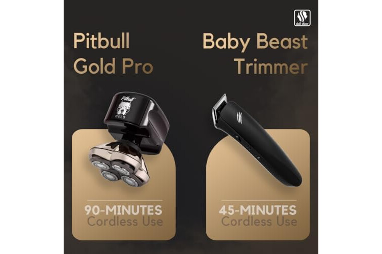 Skull Shaver Pitbull Gold PRO Electric Razor & Baby Beast Trimmer - Premium Cordless Electric Shaver for Men - for Wet & Dry Shaving - Features LED Battery Display - Comes with Travel Pouch
