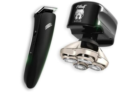 What's in the Shaving Kit: The men's grooming kit comes with a Pitbull shaver, Baby Beast trimmer, adapter, USB charging cord, and travel pouch