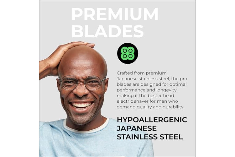 Premium Electric Shaver: This head shaver ensures a comfortable shave, effortlessly reaching tough spots; the Japanese stainless steel blades are designed for optimal performance and longevity