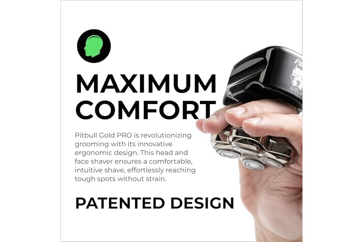 Skull Shaver Pitbull Gold PRO Head & Face Shaver - Premium Cordless Electric Shaver - for Wet & Dry Shaving - Features LED Battery Display - Comes with Travel Pouch