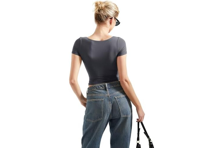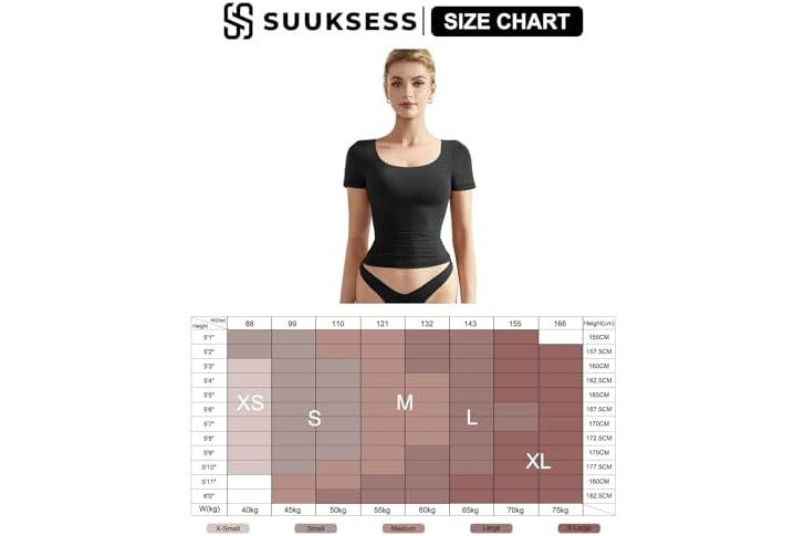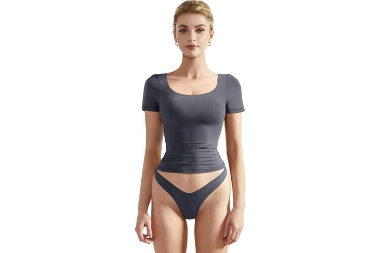 SUUKSESS Women Double Lined Fitted Basic Tee Scoop Neck Short Sleeve Y2K Crop Top