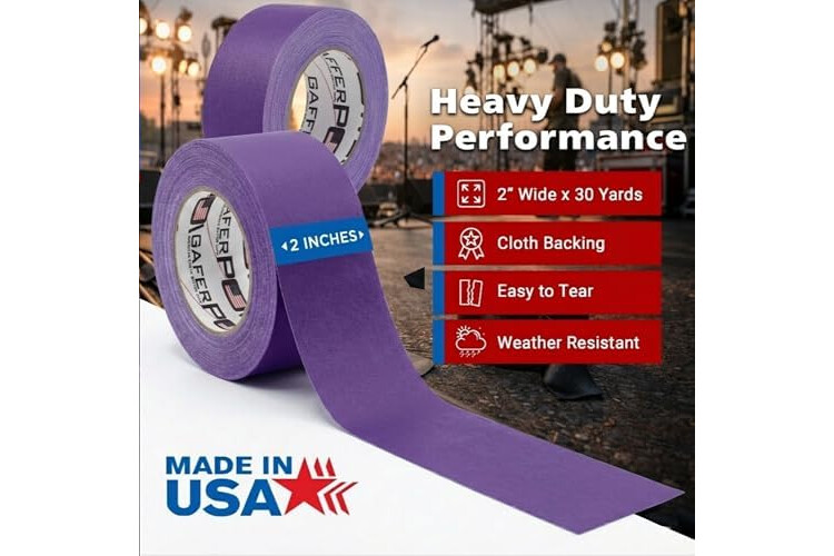 PROFESSIONAL GRADE PURPLE GAFFER TAPE – MADE IN USA; Built to the same high standards used on film sets, stages, and live productions—reliable performance for both professionals and everyday use.