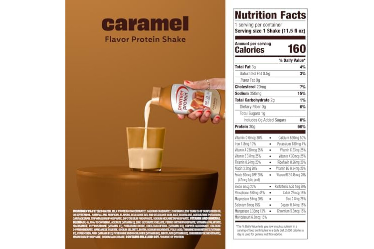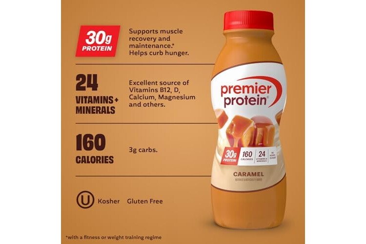 Premier Protein Shake, Caramel, 30g Protein, No Added Sugar, 24 Vitamins & Minerals to Support Immune Health, 11.5 fl oz, 12 Pack (Packaging May Vary)
