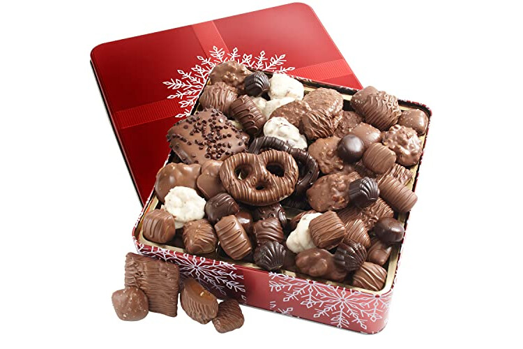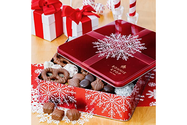 Festive Indulgence in Every Layer: Surprise loved ones with a holiday tin bursting with rich chocolate candies and sweets; makes a memorable stocking stuffer or wife Christmas gift idea; ideal for families, men, women, and corporate holiday gift baskets