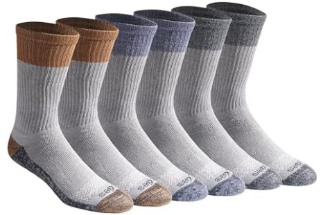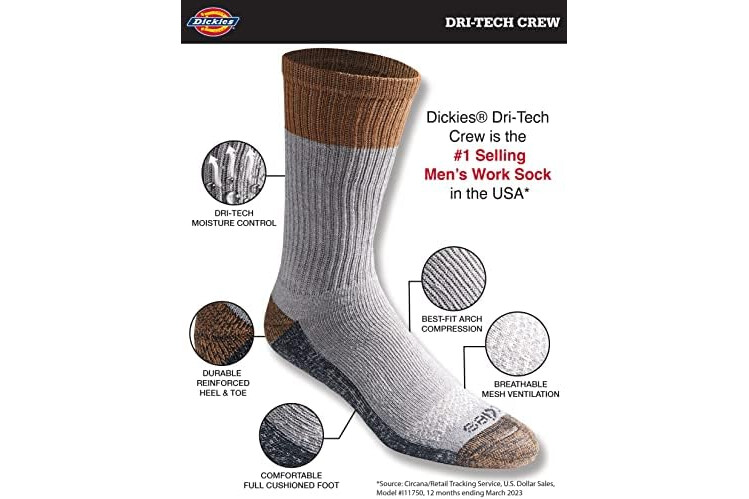 Dickies Men's Dri-Tech Original Moisture Control Crew Socks, Available in M-XXL (6, 12, 18 Pairs), Color Block Assorted (6 Pairs), Medium