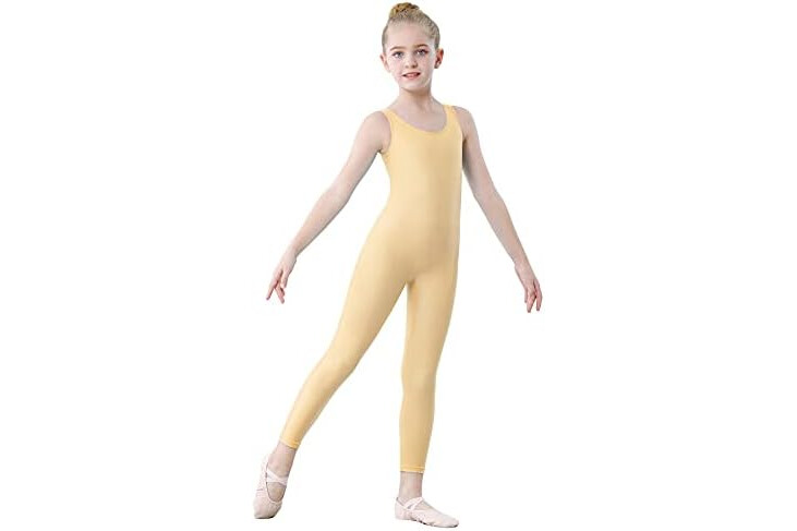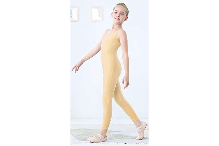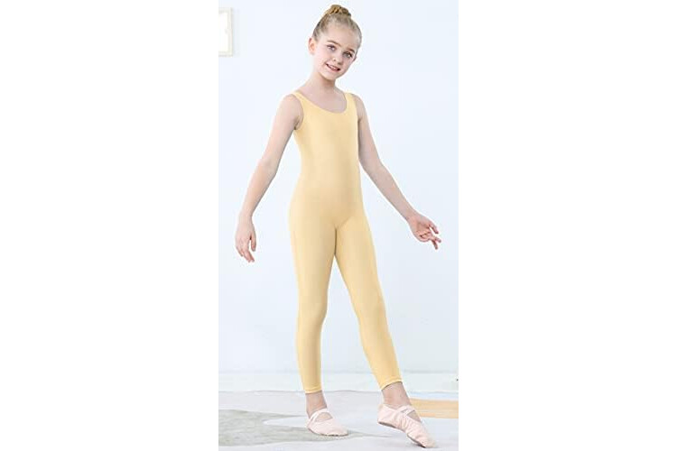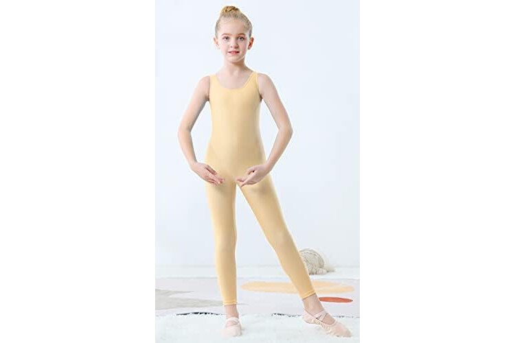 YgneeDom Kids Girls Sleeveless Tank Unitards One Piece Stretchy Spandex Full Body Leotard Bodysuit Dance Costumes (Flesh, Medium)