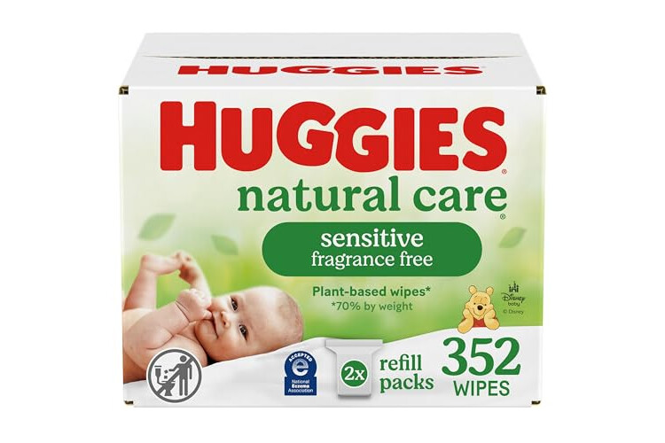 • 2 refill packs of 176 Huggies Natural Care Sensitive Baby Wipes, Unscented (352 wipes total), packaging may vary