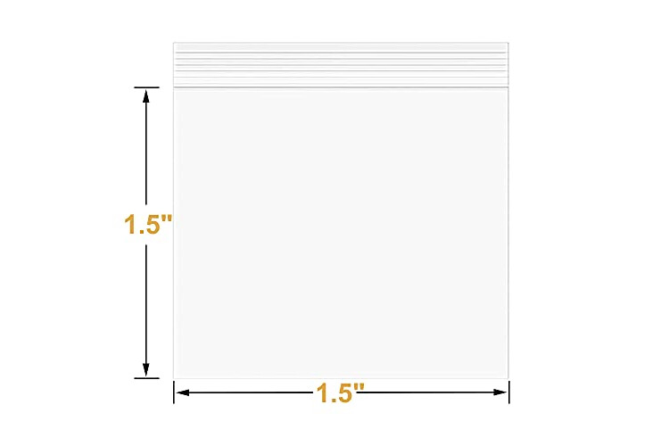【Bag Specification】: 200pcs 1.5"x1.5" Clear thick 2.4 mil zipper bags. The zip bags are thickened to 2.4 mil (one-side), heavy-duty and durable. While most of the bags of market are 2 mils commonly.
