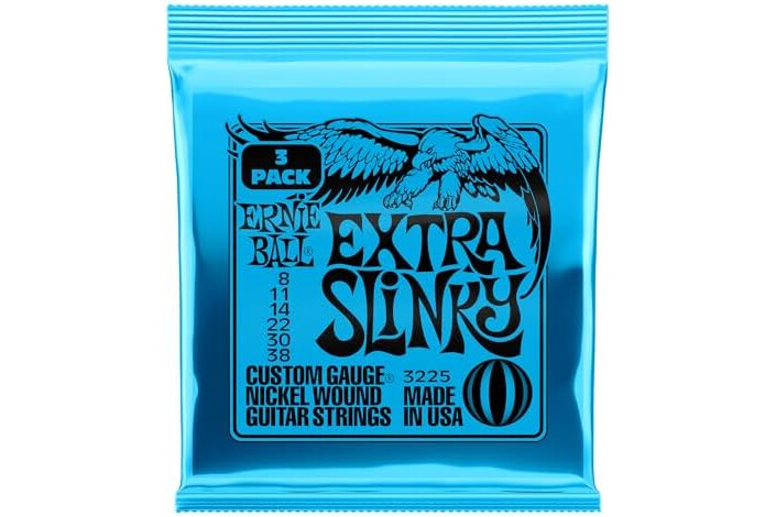 Ernie Ball Extra Slinky Nickel Wound Electric Guitar Strings 3-pack, 8-38 Gauge (P03225)