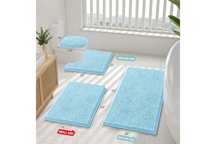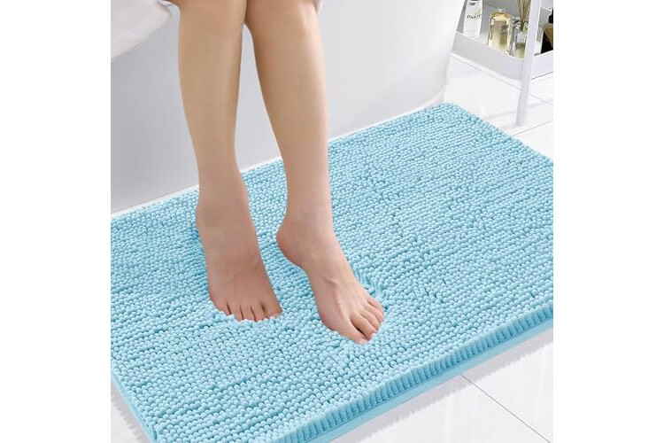 Smiry Luxury Chenille Bathroom Rugs 36x24, Extra Soft and Absorbent Shaggy Bath Mat, Machine Washable, Non-Slip Plush Carpet Runner for Tub, Shower, and Floor, Home Decor Accessories, Sky Blue