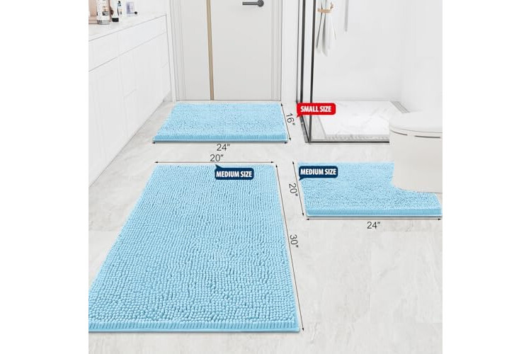 Smiry Luxury Chenille Bathroom Rugs 40x32, Extra Soft and Absorbent Shaggy Bath Mat, Machine Washable, Non-Slip Plush Carpet Runner for Tub, Shower, and Floor, Home Decor Accessories, Sky Blue