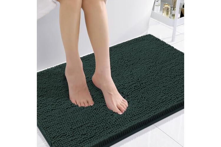 Smiry Luxury Chenille Bathroom Rugs 36x24, Extra Soft and Absorbent Shaggy Bath Mat, Machine Washable, Non-Slip Plush Carpet Runner for Tub, Shower, and Floor, Home Decor Accessories, Green