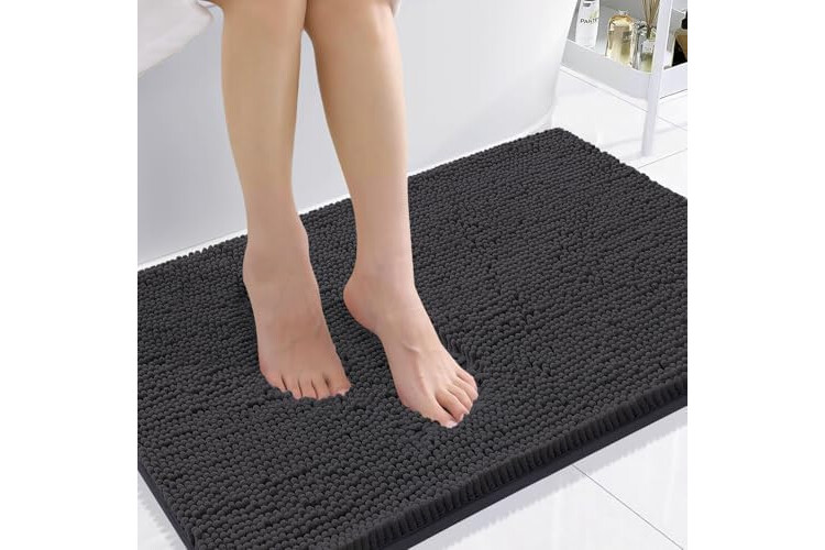 Smiry Luxury Chenille Bathroom Rugs 36x24, Extra Soft and Absorbent Shaggy Bath Mat, Machine Washable, Non-Slip Plush Carpet Runner for Tub, Shower, and Floor, Home Decor Accessories, Charcoal Grey