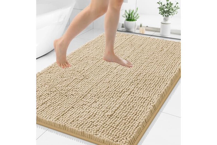 Smiry Luxury Chenille Bathroom Rugs 40x32, Extra Soft and Absorbent Shaggy Bath Mat, Machine Washable, Non-Slip Plush Carpet Runner for Tub, Shower, and Floor, Home Decor Accessories, Beige