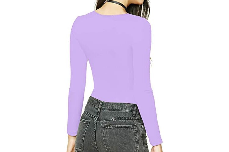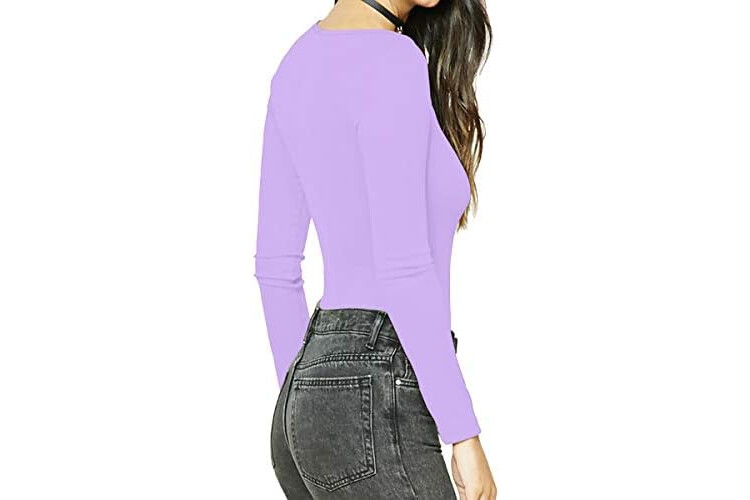 MANGDIUP Women's Round Collar Long Sleeve Elastic Bodysuit Jumpsuit