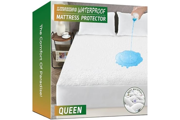 Lunsing Waterproof Queen Mattress Protector, Noiseless, Breathable, and Soft Cotton Terry Queen Size Mattress Pad Cover, 6-18 in Deep Pocket