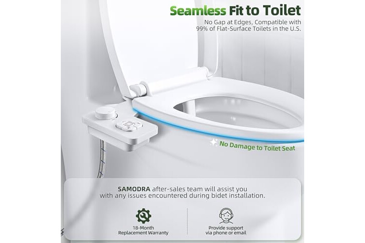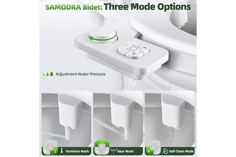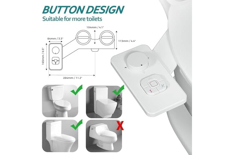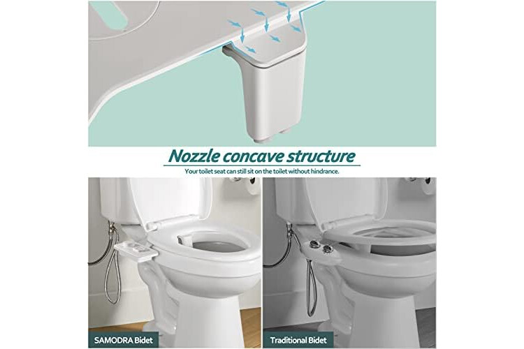 Dual Spray Nozzles: Bidet attachment features dual nozzles for two spray modes: front cleaning for women's private, rear cleaning for men & women. Samodra upgrades knob switch to button design for easier to switch between patterns