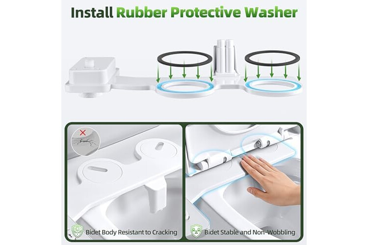 High Quality Parts: Bidet attachment is constructed with durable ABS material, portable control panel, high-pressure faucet quality valves with metal/ceramic core, brass T-adapter, braided steel cold water hose instead of traditional plastics