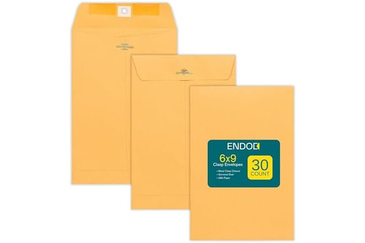 Clasp Envelopes - Brown Kraft Catalog Envelopes 6x9 Inch - 30 Pack - With Clasp Closure & Gummed Seal – 28lb Heavyweight Paper Letter Envelopes for Home, Office, Business, Legal or School
