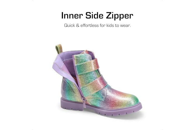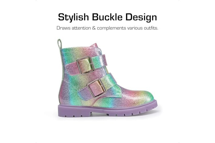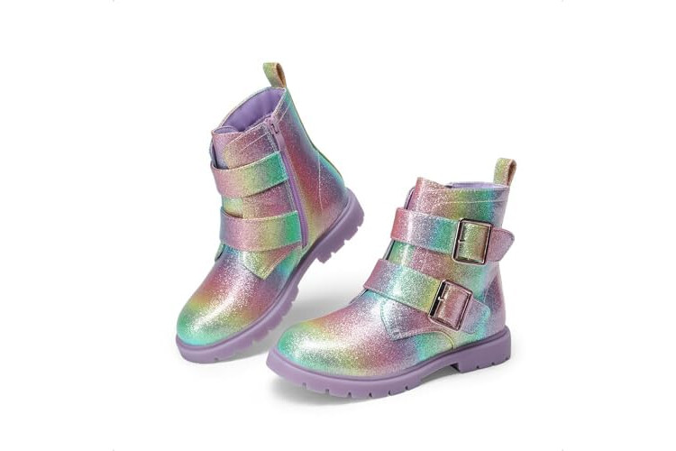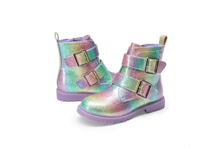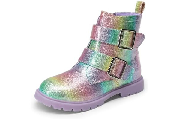 DREAM PAIRS Girls Boys Glitter Ankle Boots Side Zipper Combat Shoes with Buckles Toddler/Little Kid/Big Kid