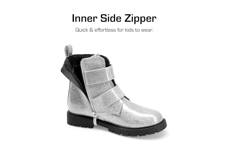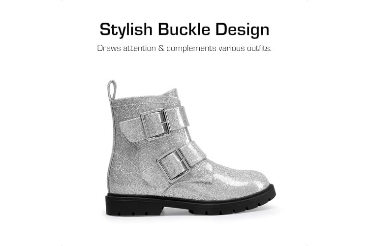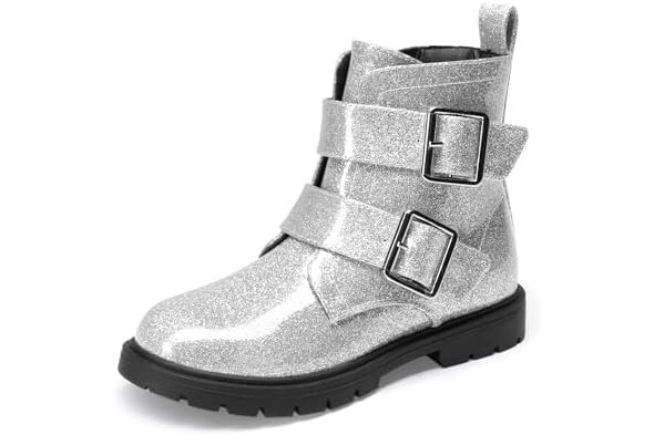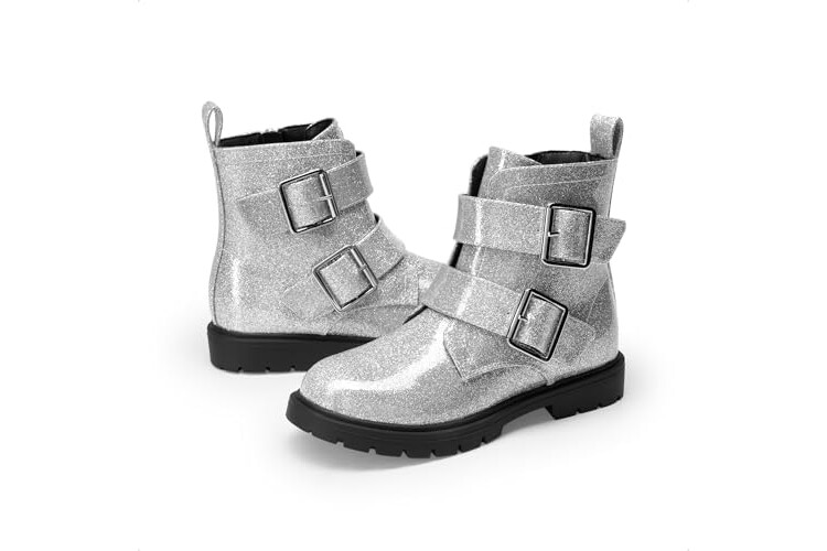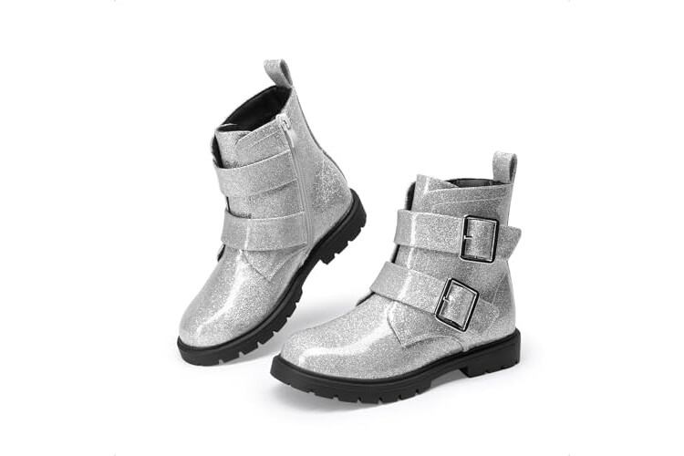 DREAM PAIRS Girls Boys Glitter Ankle Boots Side Zipper Combat Shoes with Buckles Toddler/Little Kid/Big Kid