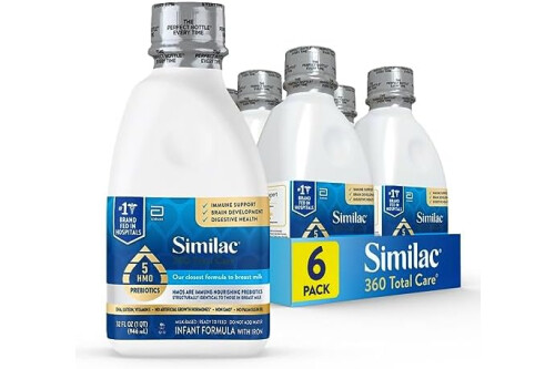 Similac 360 Total Care Infant Formula, Has 5 HMO Prebiotics, Our Closest Prebiotic Blend to Breast Milk, Non-GMO,‡ Baby Formula, Ready to Feed, 32-fl-oz Bottle, Pack of 6