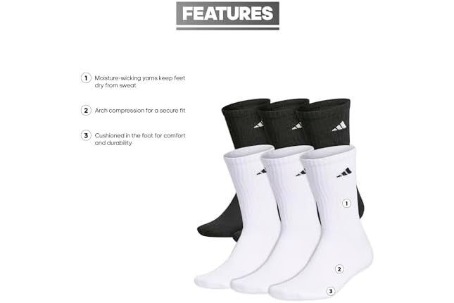 adidas Men's Athletic Cushioned 6-Pack Crew, Cushioned Crew Socks with Arch Compression for a Secure Fit