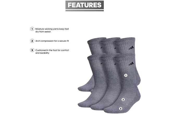 adidas Men's Athletic Cushioned 6-Pack Crew, Cushioned Crew Socks with Arch Compression for a Secure Fit