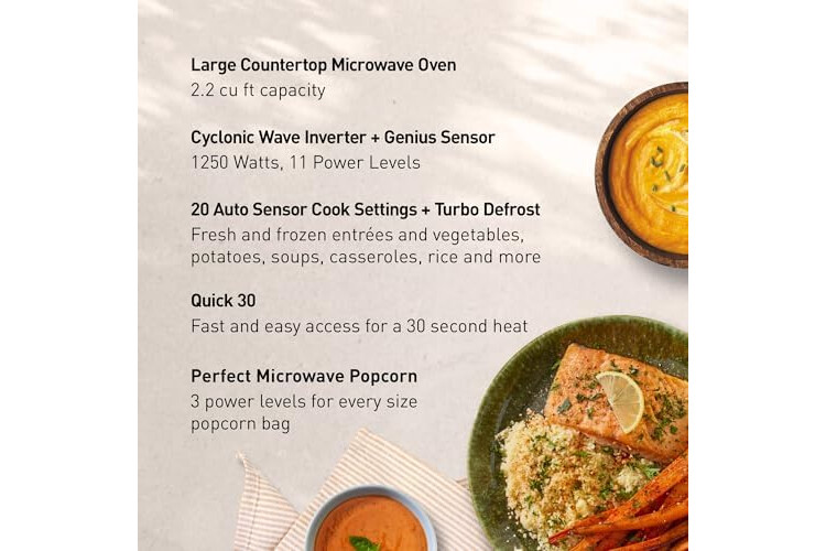 INVERTER TECHNOLOGY WITH TURBO DEFROST: patented Inverter Technology generates a seamless stream of power and delivers consistent, evenly prepared food without overcooking; advanced Inverter Turbo Defrost speeds up defrosting time