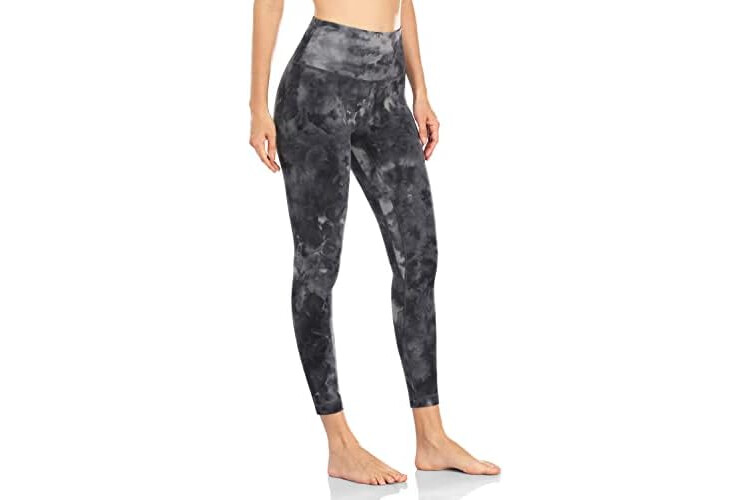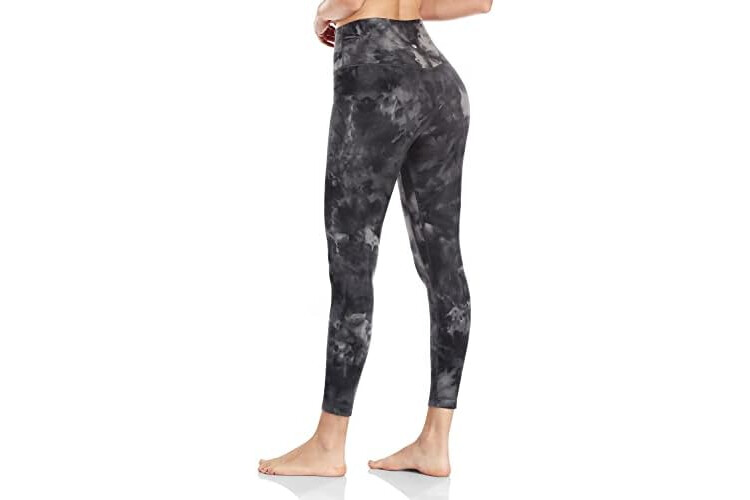 HeyNuts Essential 7/8 Leggings High Waisted Yoga Pants for Women, Soft Workout Pants Compression Leggings with Inner Pockets Tie Dye Coal Black_25'' L(12)