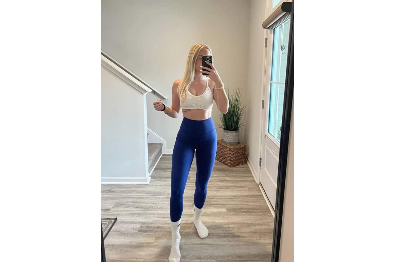 HeyNuts Essential High Waisted Yoga Leggings for Tall Women, Buttery Soft Full Length Workout Pants 28'' Sapphire Blue L(12)