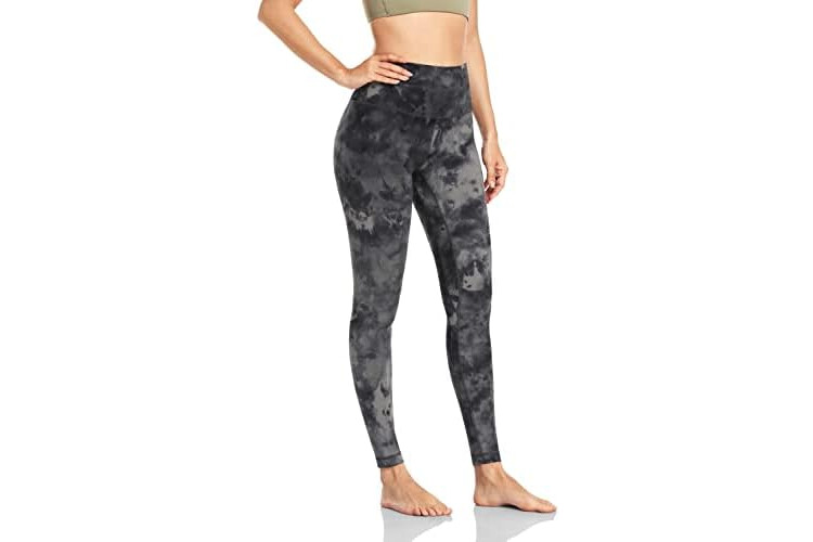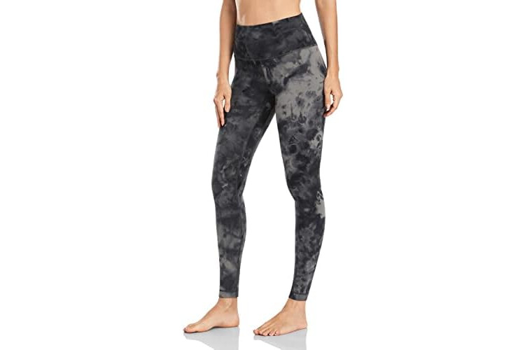 HeyNuts Essential High Waisted Yoga Leggings for Tall Women, Buttery Soft Full Length Workout Pants 28'' Tie Dye Coal Black XL(14)