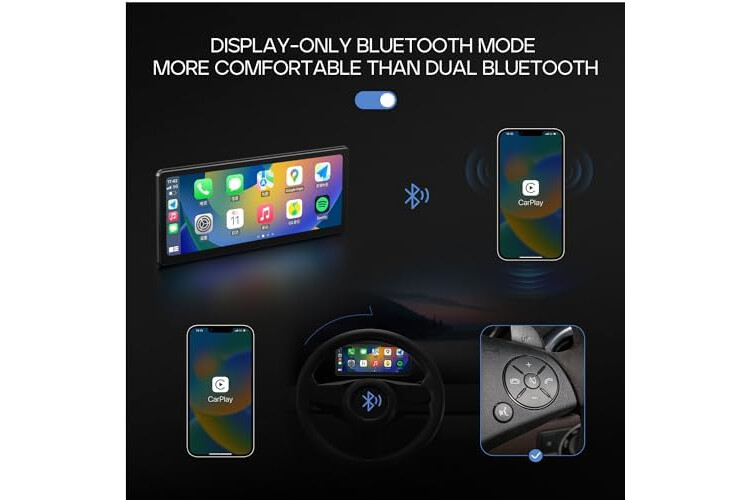 【Display-Only Bluetooth Mode】this portable carplay After activating Display-Only Bluetooth Mode, connect your phone to the car's Bluetooth for full playback of maps, music, and calls. Supports steering wheel buttons and microphone.