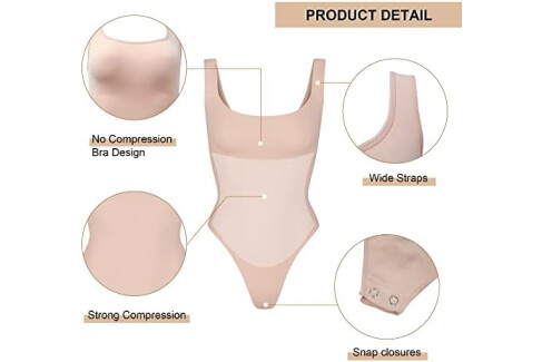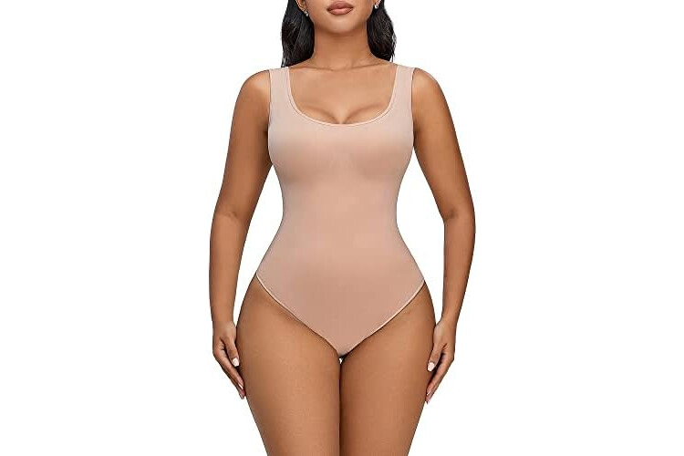 SHAPERX Bodysuit for Women Tummy Control Shapewear Sleeveless Seamless Sculpting Thong Body Shaper,SZ5238-Sand-4XL