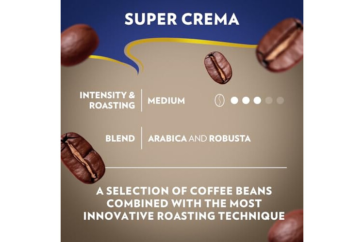 • SUPER CREMA: A 2.2 lb whole bean coffee bag ideal for espresso preparation