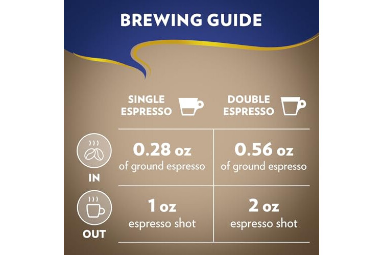 • BREWING GUIDE FOR SINGLE ESPRESSO: 0.28 oz of ground espresso delivers a 1 oz espresso shot