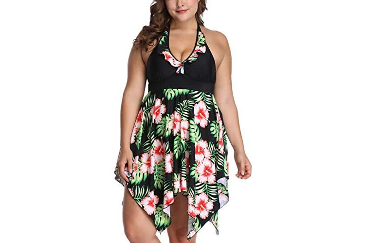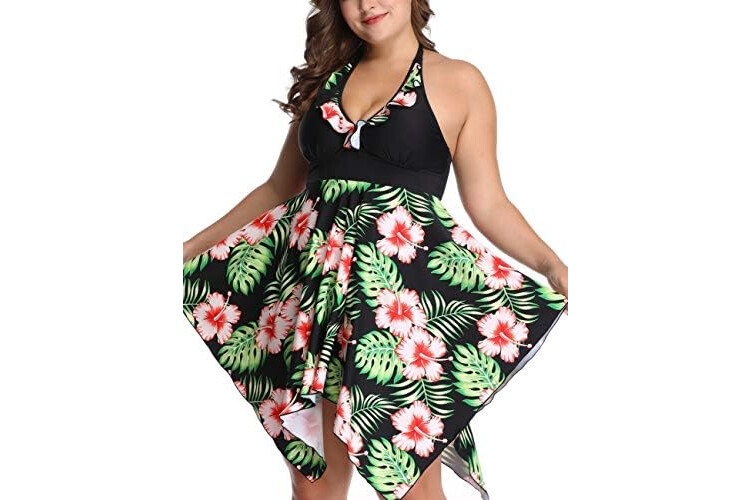 SEBOWEL Plus Size Tankini Swimsuits for Women Two Piece Swim Dress Flare Flowy Bathing Suits
