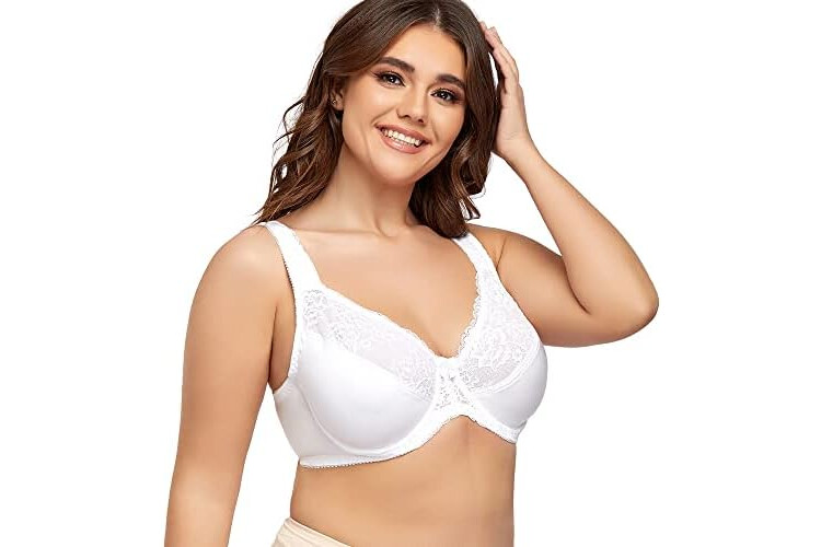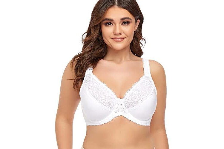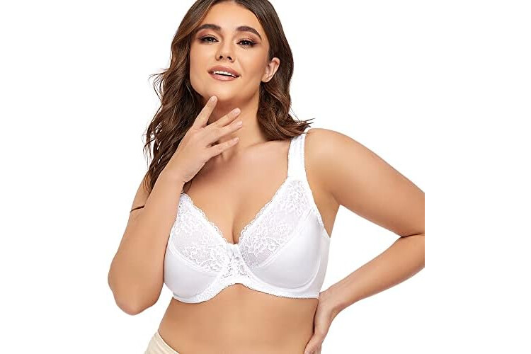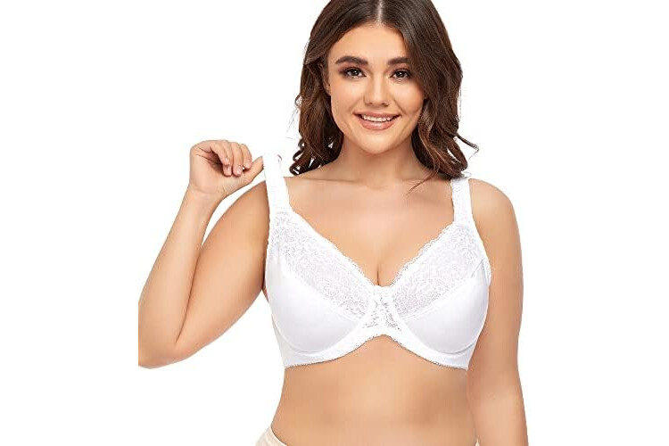 Women's Plus Size Full Coverage Lace Bra Underwire Non Padded Push up Bralette 50C White