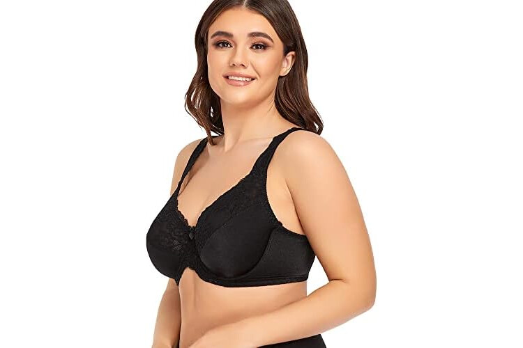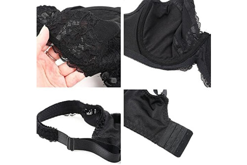 Women's Plus Size Full Coverage Lace Bra Underwire Non Padded Push up Bralette 34-DD Black