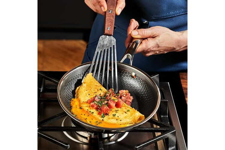Tri-ply construction with an aluminum core for quicker even heating, it’s safe to use on any home cooktop or stovetop, including induction. HexClad is metal utensil-safe, dishwasher-friendly, and oven-safe up to 900°F. (Tempered glass lids are oven-safe up to 400°F, while stainless steel lids are oven-safe up to 900°F.)