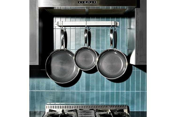 HexClad’s Hybrid technology features a laser-etched hexagonal nonstick surface that combines both stainless-steel and our TerraBond ceramic coating for the ultimate sear and easy cleaning.