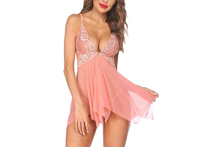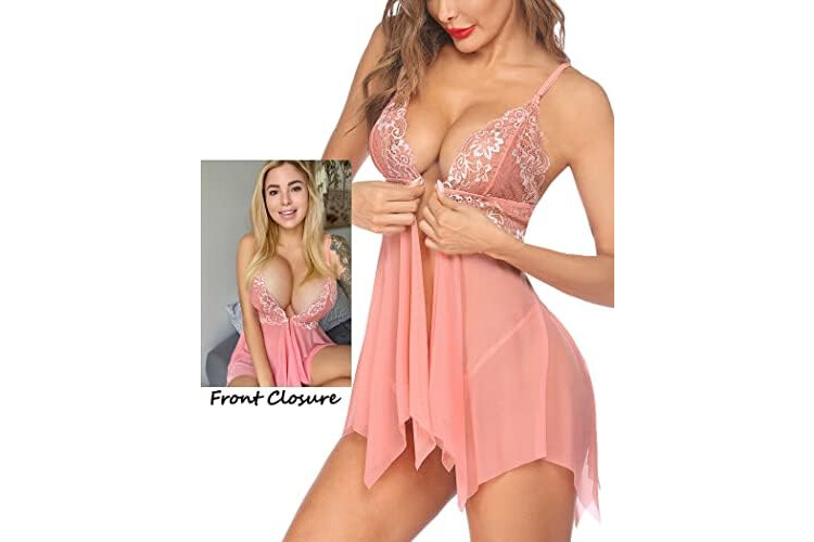Avidlove Women Lace Lingerie Front Closure Babydoll V Neck Nightwear Sexy Chemise Nightie