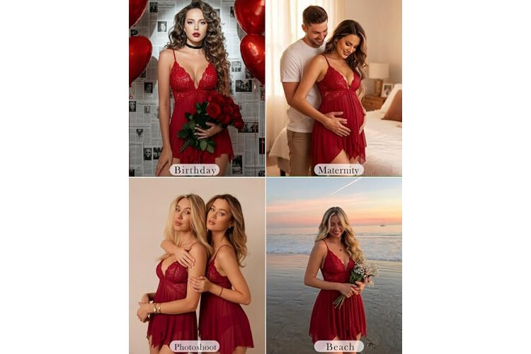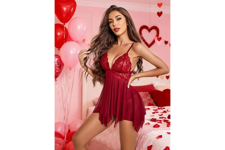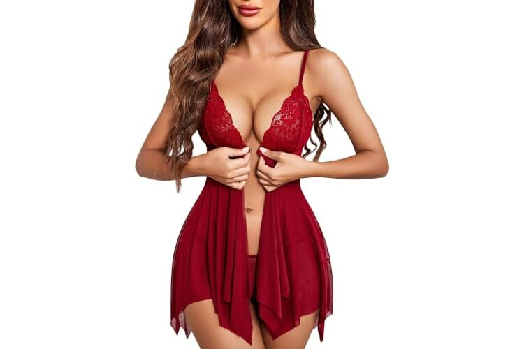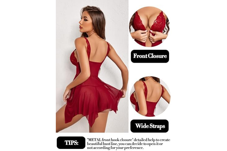 Avidlove Women Lace Lingerie Front Closure Babydoll V Neck Nightwear Sexy Chemise Nightie