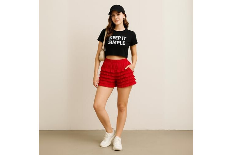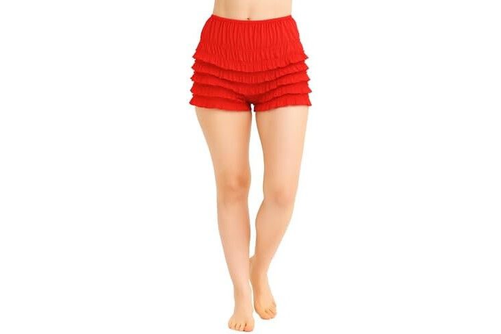Malco Modes Short Bloomers High Waist Ruffled Petti Pants | Elevate Festive Flair with Red Fluffy Shorts Christmas Lingerie & Christmas Panties (Style N20)