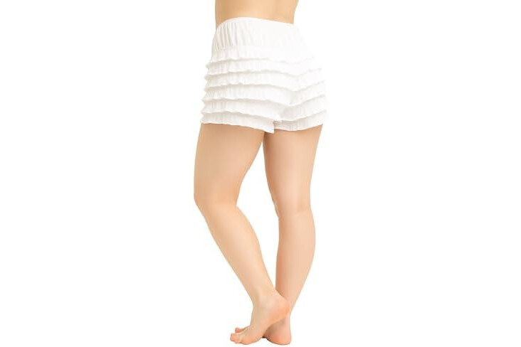 Malco Modes Nylon Women Pettipants, Sexy Ruffle Panties- Lisa tanga/rumba booty boy short bloomers, Lacey Dance Shorts- perfect lacy lingerie for under skirts-Style N20-White Small