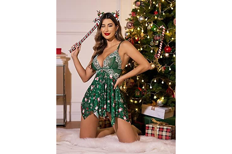 Avidlove Lingerie for Christmas Women Lace Babydoll Sexy Sleepwear Strap Chemise Lingerie V Neck Nighty reen