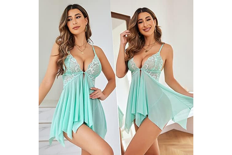 Avidlove Women Lace Lingerie Front Closure Babydoll V Neck Nightwear Sexy Chemise Nightie