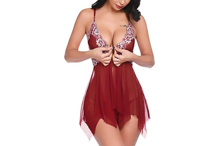 Avidlove Women Lace Lingerie Front Closure Babydoll V Neck Nightwear Sexy Chemise Nightie