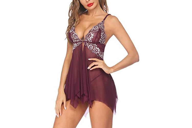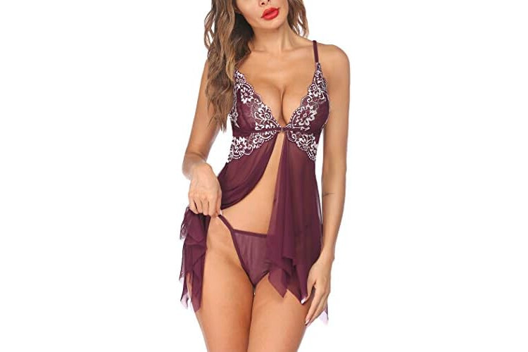 Avidlove Women Lace Lingerie Front Closure Babydoll V Neck Nightwear Sexy Chemise Nightie