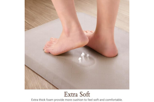EXTRA SOFT:Extra thick kitchen mats are ergonomically designed for your comfort and are perfect choice for for people who spends a lot of time on their feet at work or at home.Cushioned support help improve circulation and posture while maintaining the firmness needed to keep a steady footing